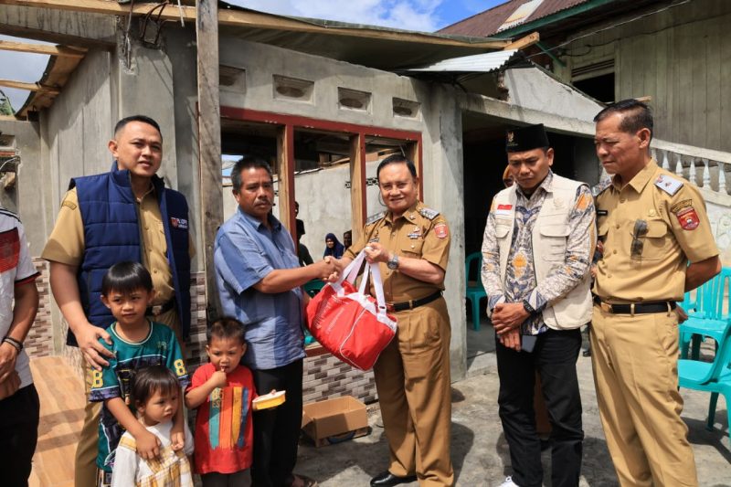 Dalam kunjungannya, Wabup Mad Hasnurin menyerahkan bantuan berupa Sembilan Bahan Pokok (Sembako), peralatan rumah tangga dan uang tunai berasal dari Dinas Sosial (Dinsos) dan Badan Amil Zakat Nasional (Baznas).