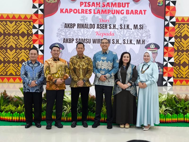 Acara tersebut menandai peralihan tongkat kepemimpinan Polres Lampung Barat dari AKBP Rinaldo Aser, SH., S.Ik., M.Si., kepada AKBP Samsu Wirman, SH., S.Ik., M.H., yang dihadiri langsung oleh Bupati Lampung Barat Parosil Mabsus bersama Wakil Bupati Drs. Mas Hasnurin, Sekda Drs. Nukman, jajaran Forkopimda, Ketua DPRD dan anggota, Ketua TP-PKK, Ketua Dharma Wanita, serta para kepala instansi vertikal.